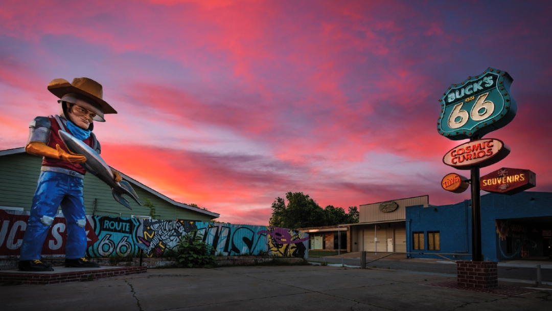 Tulsa is The Capital of Route 66®. Home to the “Father of Route 66,” Cyrus Avery, Tulsa contains 28 miles of the Mother Road in the city limits. Quirky shops, roadside attractions, and more than 66 new neon signs line the Route in Tulsa.
